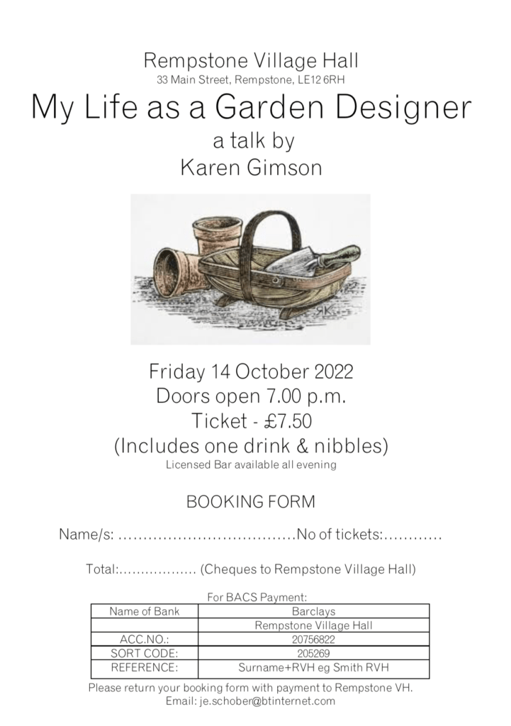 We’re delighted to be welcoming renowned garden designer, Karen Gimson, to provide an engaging and informative talk about her life, experience and projects.
